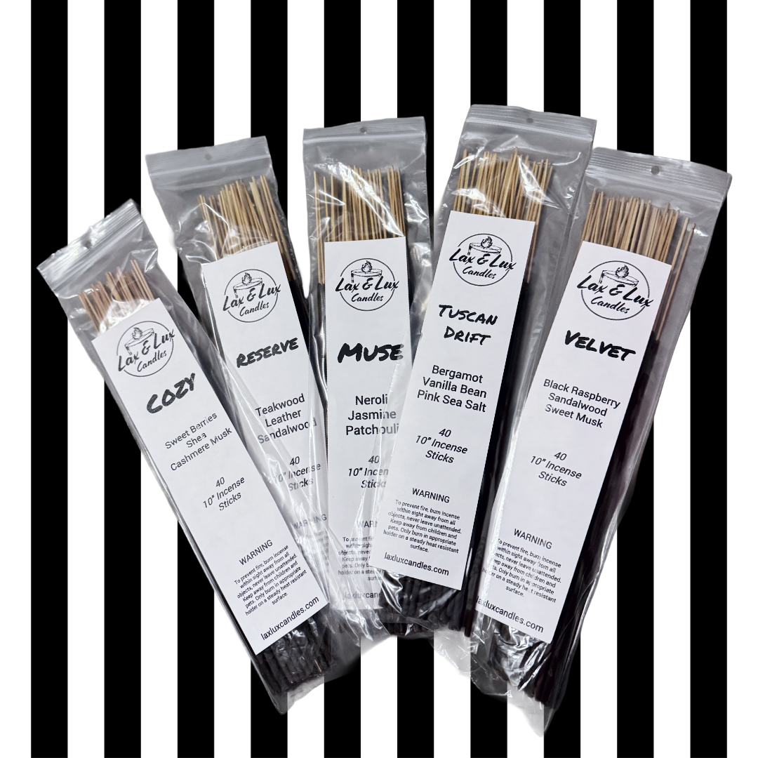 Our incense sticks are hand-dipped in our custom fragrance blends to provide that unique reLAX in LUXury experience. You will not find these blends anywhere else!!!